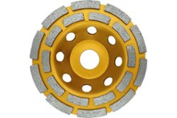 Чаще всего для произведения работ в строительстве используют двухрядные и алмазные чашки с сегментами «турбо». Двухрядная чашка необходима для более грубой обработки твердых поверхностей. С ее помощью можно снять от нескольких миллиметров до нескольких сантиметров материала, поэтому она незаменима при необходимости выровнять бетонный или каменный пол. Можно выбрать круг больших диаметров: от 125, 150 до 180, 230 мм. От диаметра и прочностных характеристик будет зависеть также цена инструмента.