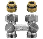 • Узел для нижнего подключения  радиатора ( двухтрубная система ) Valtec 1/2"НРx3/4"НР (VT.225K.N.E04100)