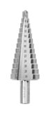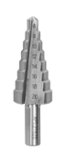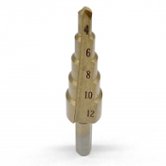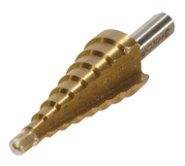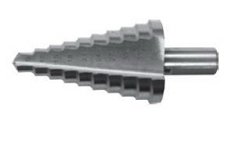 Ступенчатое сверло коническое благодаря особенной форме – наличие конусообразного хвостика – делает процесс резания более мягким. Оно изготавливается с быстрорежущей стали с использованием лазерных технологий, что обеспечивает идеально точные параметры изделия. Для повышения прочности может иметь специальное покрытие из кобальта, нитрида бора или нитрида титана, однако такое исполнение требует применения в работе охлаждающих смазок. Применение конических сверл позволяет производить идеально ровные отверстия больших диаметров без необходимости постоянно менять сверла разного диаметра.