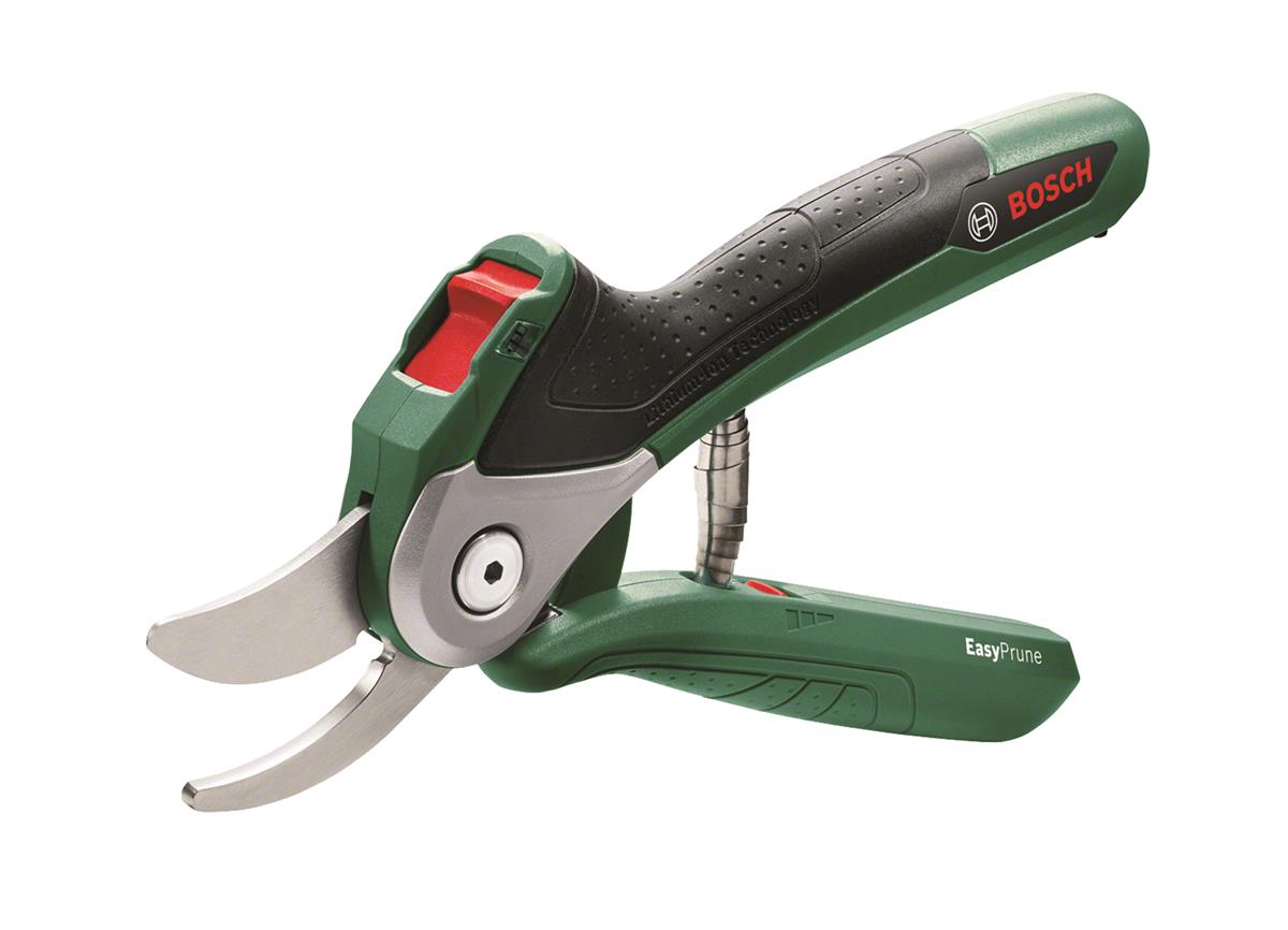 Если лопата с моторчиком так и не перебралась из сферы анекдотов в наши подсобные хозяйства (культиватор, хотя и делает почти то же самое, на обычную лопату не сильно похож), то секатор BOSCH EasyPrune появится в продаже уже в январе 2018 года (во всяком случае, в Австрии, где был анонсирован 10.08.2017) и выглядит как обычный секатор. Весит, кстати, тоже примерно так же - 490 г.