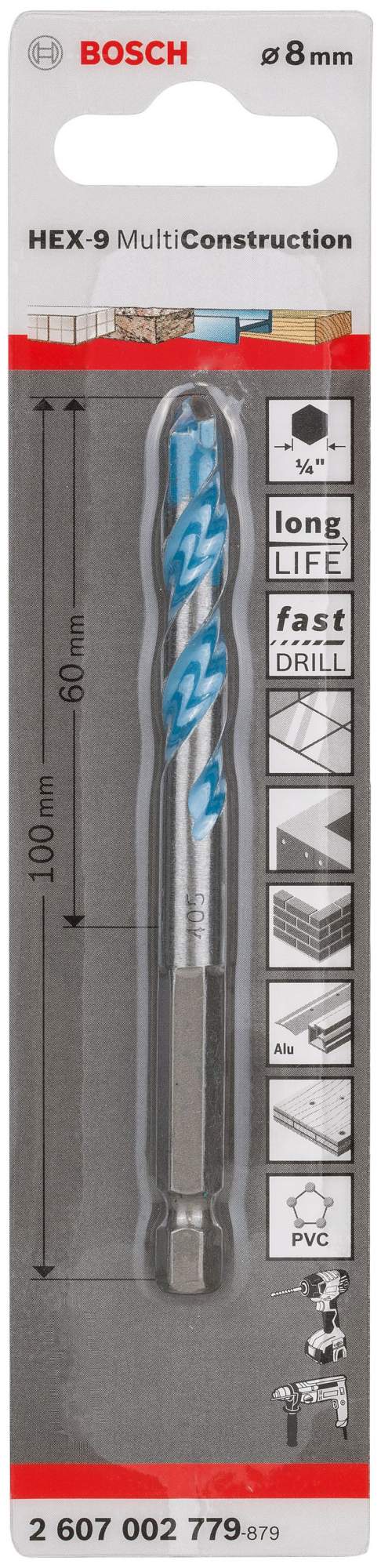 Сверло универсальное HEX-9 Multi Construction (8х60х100 мм) Bosch (2 607 002 779)