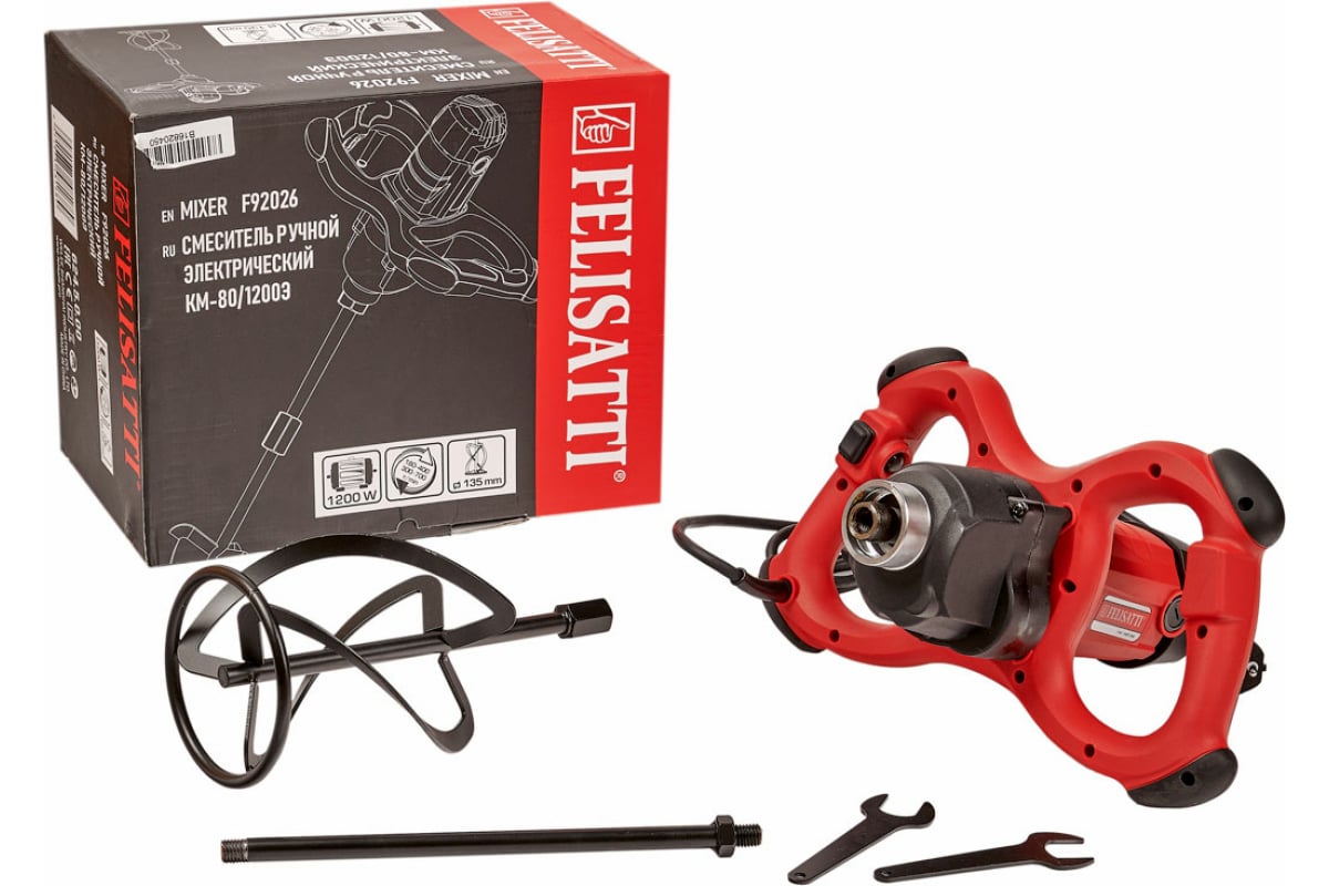 Миксер Felisatti КМ-80/1200Э 624.5.0.00 – специальный ручной электроинструмент для приготовления различных составов и растворов при выполнении ремонтно-строительных работ.