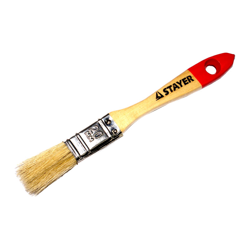 Кисть плоская, светлая натуральная щетина деревянная ручка, STAYER 20 мм (0101-020)