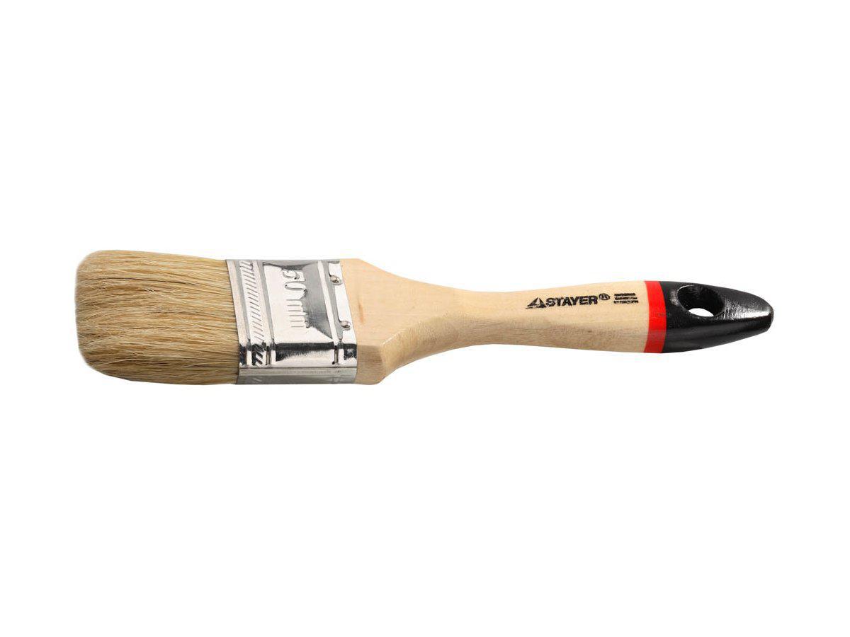 Кисть плоская, светлая натуральная щетина деревянная ручка, STAYER 50 мм (0102-050)