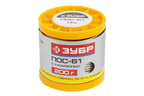 Припой ЗУБР, ПОС 61, трубка с канифолью, 200 г, 2 мм (55450-200-20C)