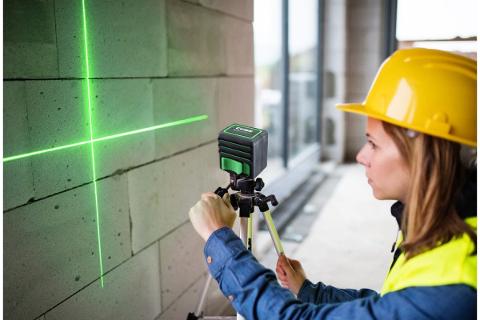 Он проецирует горизонтальную и вертикальную линии зеленого цвета - зеленый луч гораздо лучше виден, чем красный (при одинаковых условиях).