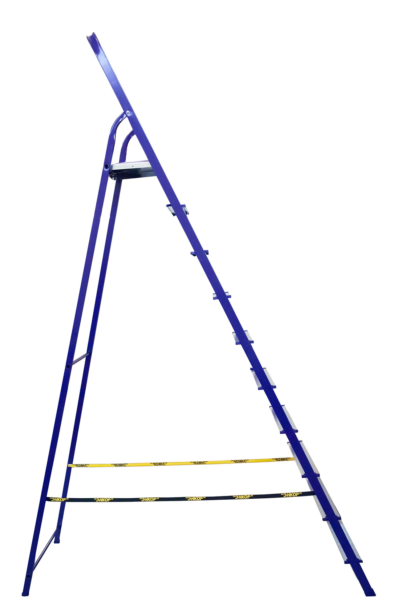 2) Правильно подобрать габариты стремянки: высота стремянки от пола до площадки + рост человека и получаем высоту до которой мы дотягиваемся. Или считаем наоборот - знаем высоту потолка квартиры(например 320см) отнимаем свой рост (например 160см) получаем высоту на которой нам надо стоять (высота от пола и до площадки - 160см)Стремянка представляет собой свободностоящую переносную лестницу, сужающуюся к верху, имеющую сторону подъема (переднюю ногу), опорную сторону (заднюю ногу), рабочую площадку и раскладывающуюся для выполнения определённой задачи. Дуга безопасности конструктивно выполнена совместно со стороной подъема.Тетивы стремянки стальной выполнены из прочного стального профиля, защищенного от коррозии эпоксидной порошковой эмалью. Задняя и передняя нога соединены между собой. Рабочая площадка выполнена из оцинкованной стали. Ступени имеют рифленую поверхность и изготовлены из высокопрочного алюминиевого профиля. Башмаки изготовлены из высокопрочного пластика. Стремянка в рабочем положении надежно фиксируется рабочей площадкой, а начиная с пятиступенчатой и выше. страховочными ремнями. Количество ступеней от 3-х до 10-и. Стремянка стальная серии М предназначена для проведения различных видов работ на высоте до 4 м как в быту, так и на производстве.