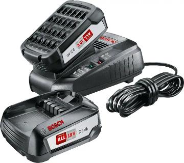• Набор Bosch 1600A011LD состоит из двух аккумуляторов PBA 18В 2,5 А*ч и устройства быстрой зарядки AL 1830 CV.