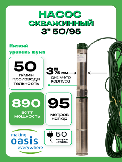 Насос погружной OASIS 50/95 3"(диаметр 75мм), напор 95м, расход 50л/мин