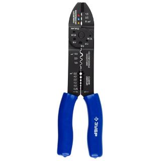Данный инструмент служит для снятия изоляции при зачистке проводов и кабелей, обжима изолированных и неизолированных наконечников, резки кабелей, отрезания латунных болтов.