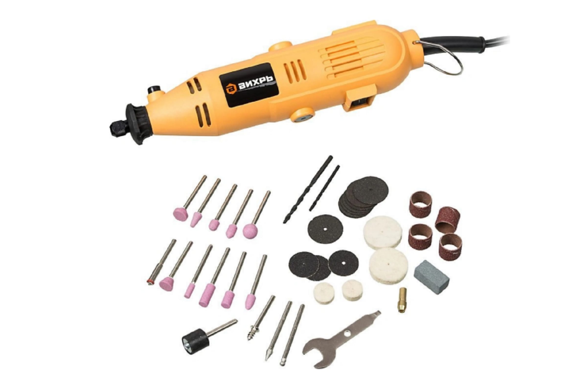 • Электрический гравер ВИХРЬ Г-150 72/4/1 используется для обработки поверхностей (шлифования, полировки, резки материалов).