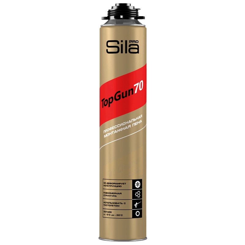 • Профессиональная монтажная пена Sila Pro TopGun 70 875 мл A1453Z предназначена для установки, герметизации и фиксации оконных, дверных блоков, подоконников, стеновых панелей, изоляционных и утеплительных материалов.