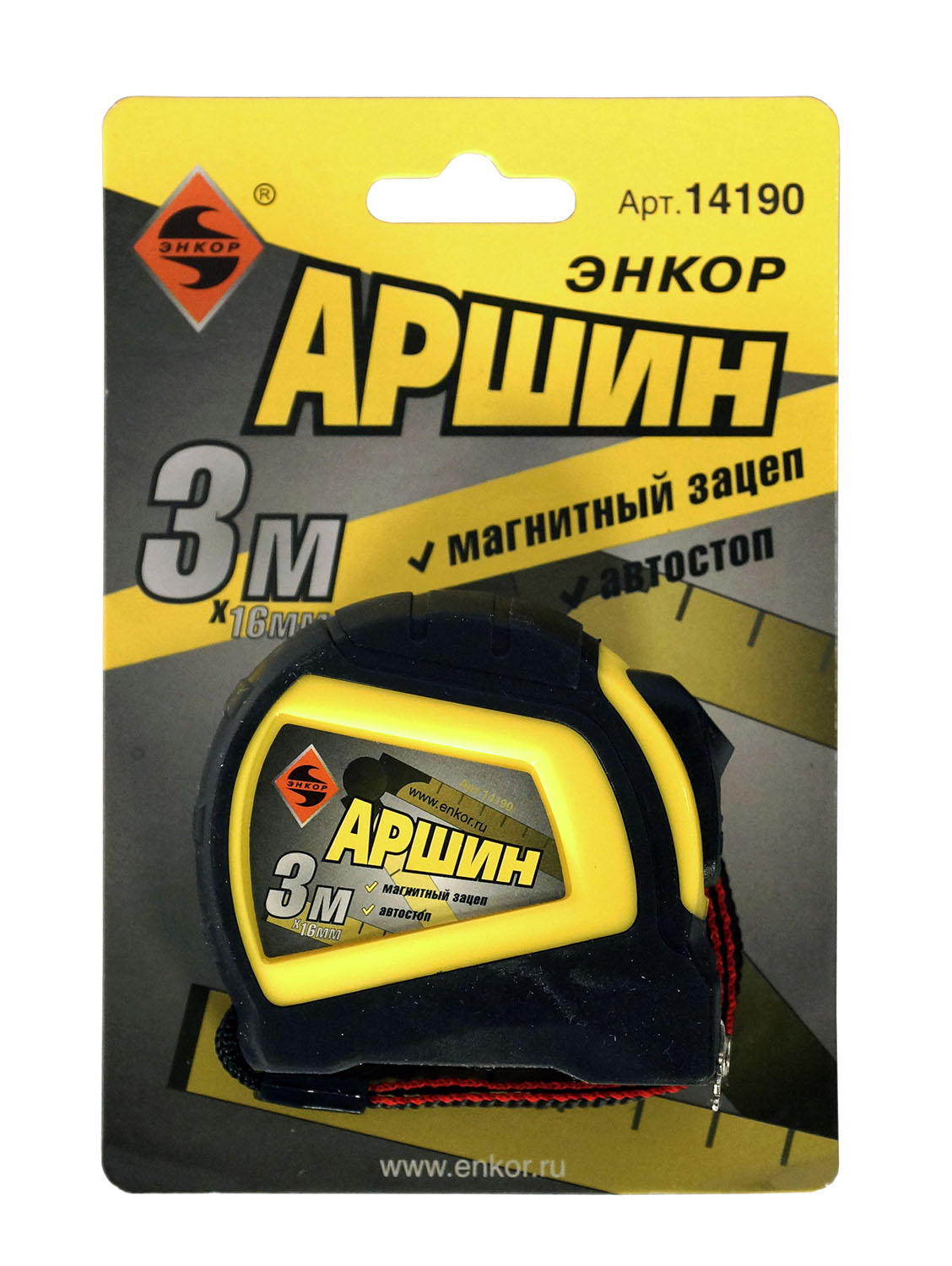 Рулетка Энкор 3 м АРШИН автостоп с магнитным зацепом (14190)