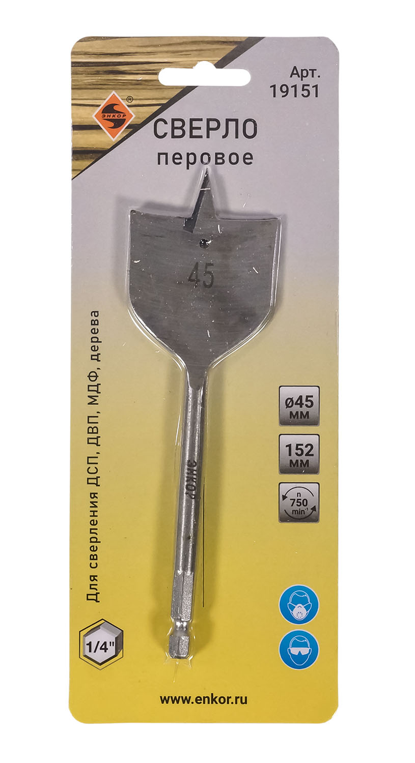 Сверло перовое по дереву Ø 45х152 мм Энкор (19151)