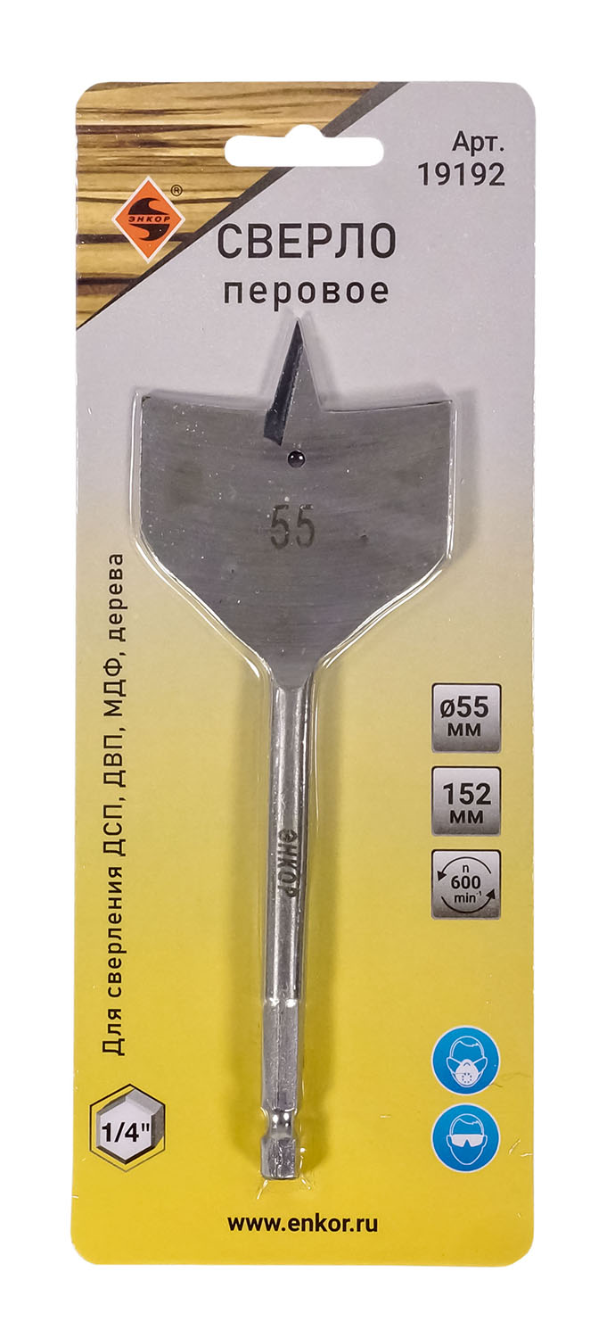 Сверло перовое по дереву Ø 55х152 мм Энкор (19192)