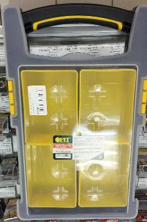 Ящик-органайзер FIT 65648 выполнен из пластика и служит для хранения и транспортировки крепежных изделий.