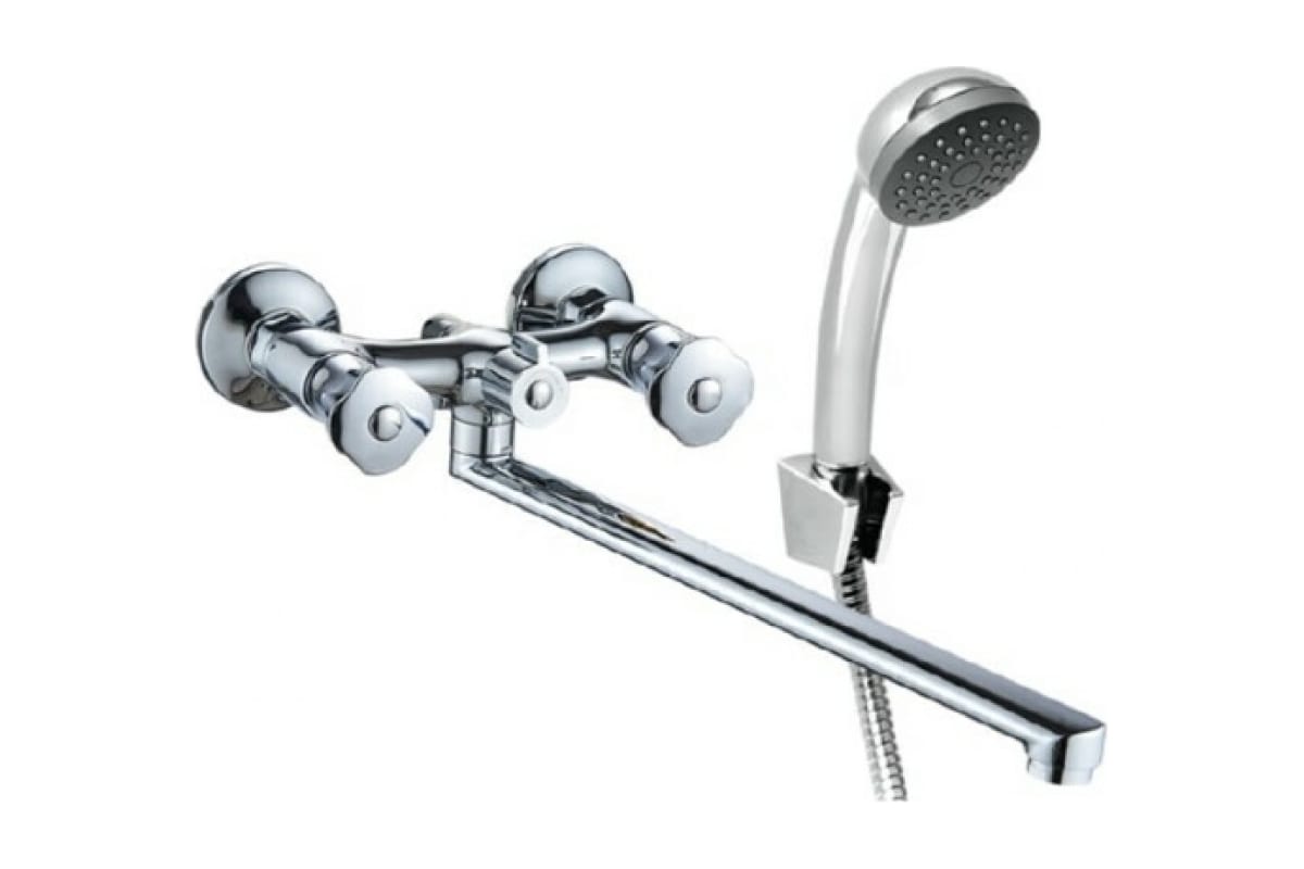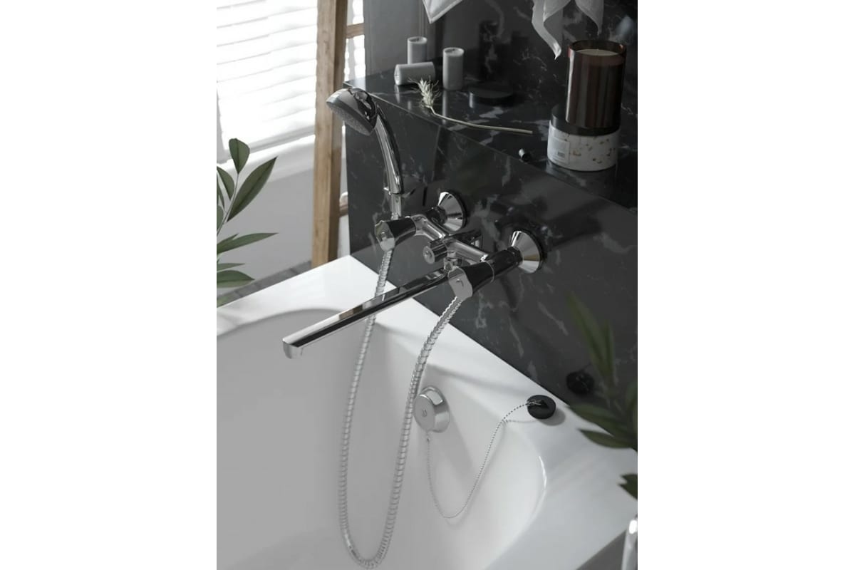 Смеситель для ванны KONNER с длинным изливом, с аксессуарами AUR2600 имеет многослойное никель-хромовое покрытие, которое придаёт блеск и надежно защищает изделие от коррозии.