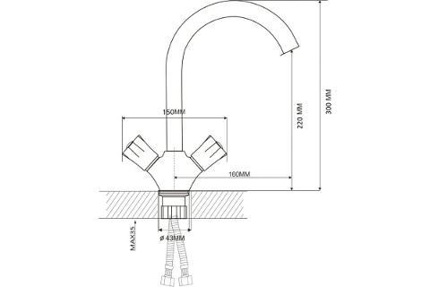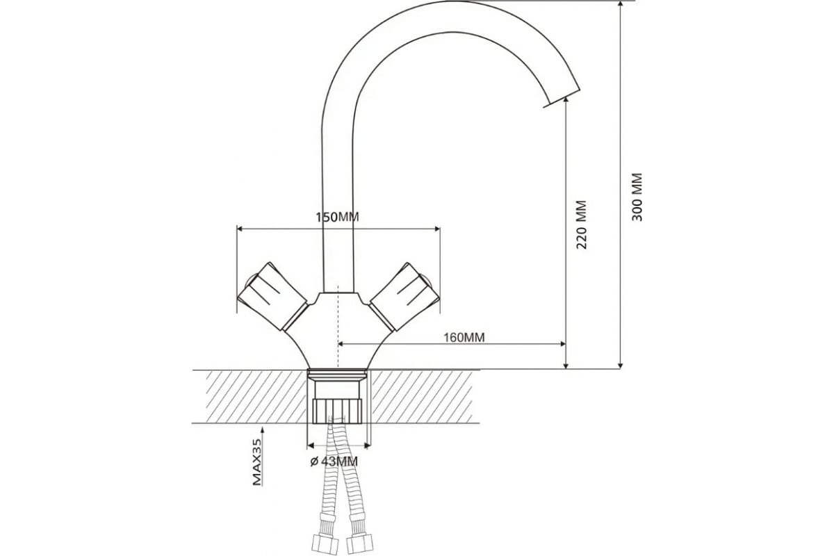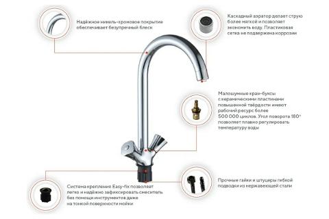 Смеситель для кухни высокий поворотный излив KONNER AURORA AUR2200