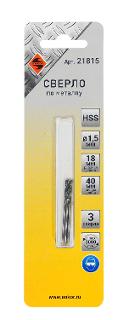 Сверло для металла hss (Ø 1,5x18/40) 3шт блистер Энкор (21815)