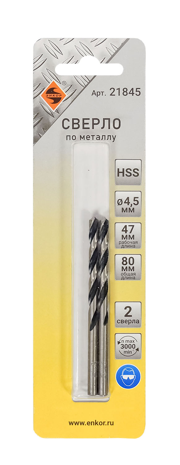 Сверло для металла hss (Ø 4,5x47/80) 2шт блистер Энкор (21845)