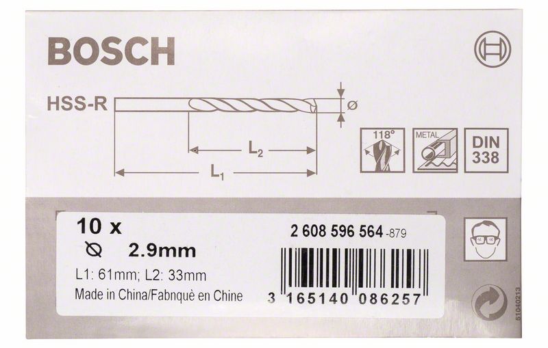 Сверло по металлу BOSCH ф2.9х33/61мм