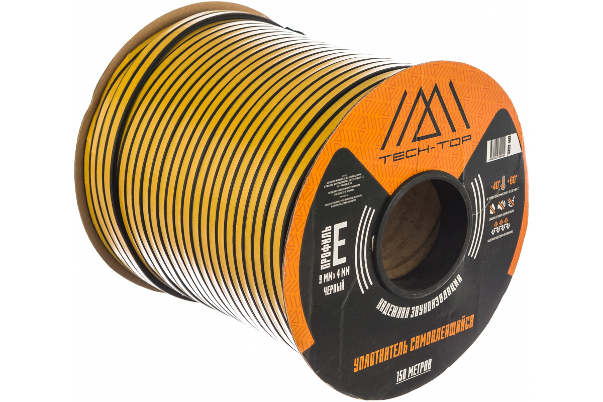 Уплотнитель TECH-TOP E, 9х4 мм, черный, бухта 150 м 205990 используется для уплотнения окон, дверей, гаражных ворот и конструкций с повышенными требованиями к пожарной безопасности.