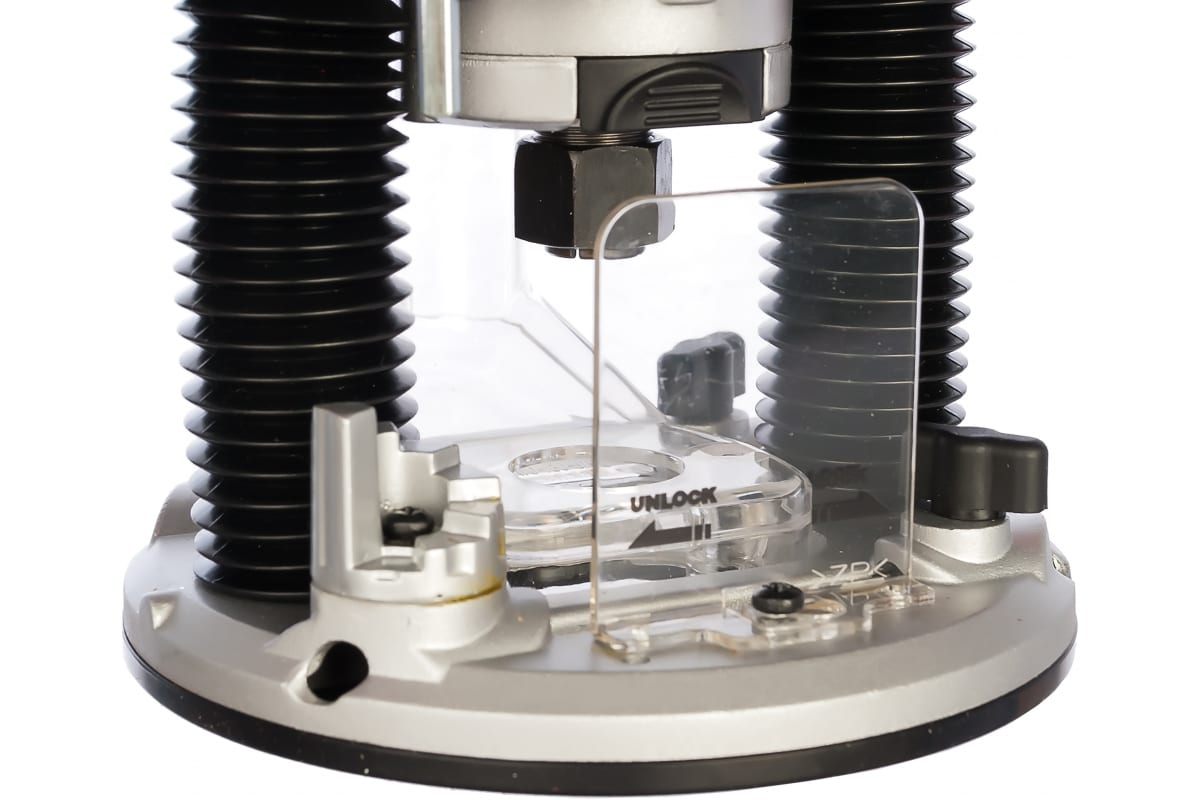 • Подвижное крепление двигателя делает возможным работу на заданной глубине (рабочий ход фрезы составляет 55 мм).
