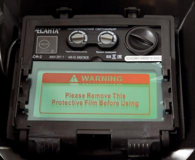 Жидкокристаллический экран: фильтр темнеет при возникновении сварочной дуги и быстро возвращается назад в прозрачное состояние при ее отсутствии, что позволяет экономить время и всегда работать обеими руками.