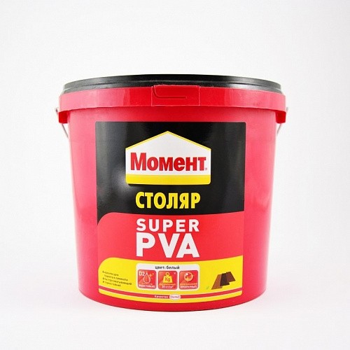 • Клей Super PVA Момент Столяр 3 кг  подходит для склеивания всех пород дерева.