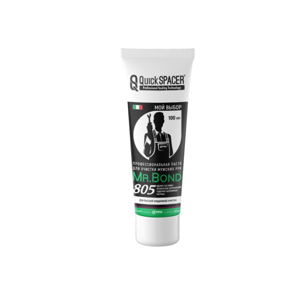 • Профессиональная паста для очистки мужских рук QuickSPACER® Mr.Bond® 805 удаляет загрязнения за счет содержания в нем абразивных частиц и ПАВ.