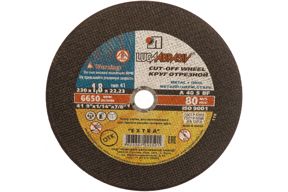 Круг отрезной Ø230х1,8х22 мет.+нерж .Луга (D11002302218000)