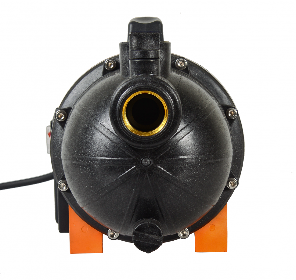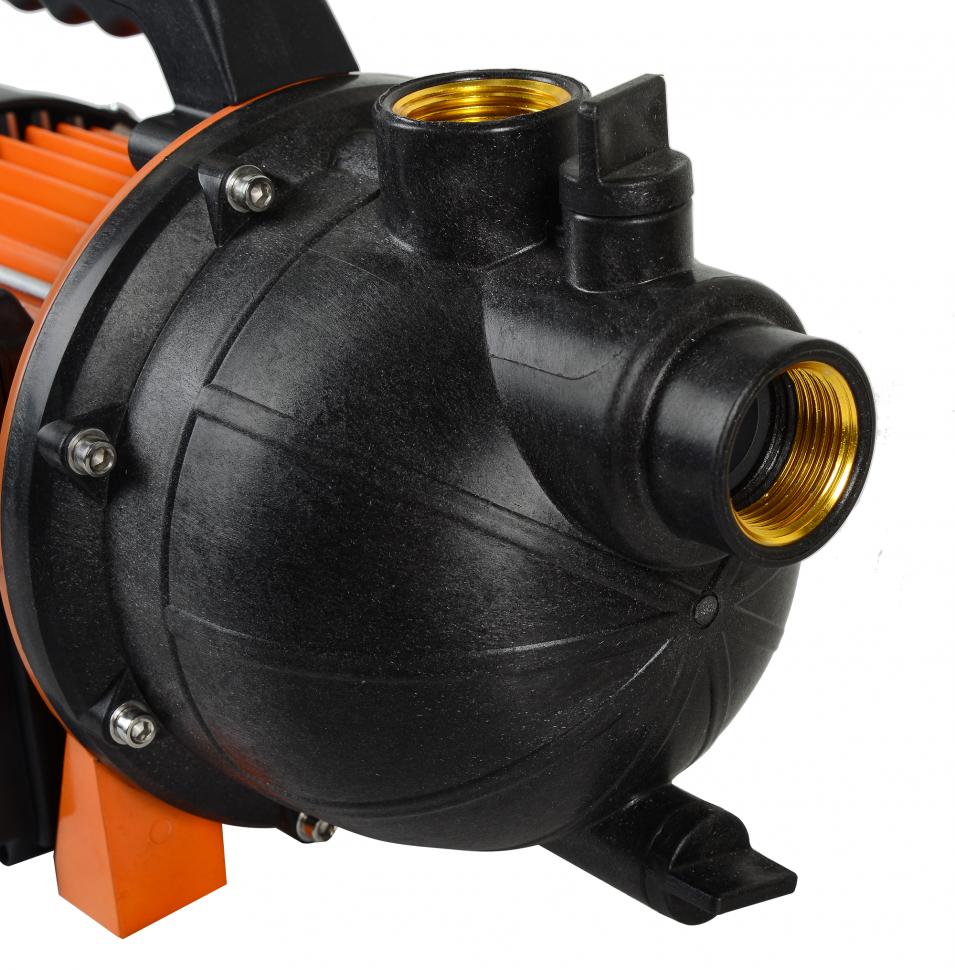 Конструкция состоит из центробежного насоса и электродвигателя мощностью 900 Вт, заключенных в прочный пластиковый корпус. Производительность составляет 60 л/мин. Для удобства переноски модель имеет рукоятку. Насосная часть сделана из пластика, но патрубки на ее крышке усилены металлической резьбой, диаметры входного и выходного отверстий составляют 1 дюйм. Крыльчатка насоса изготовлена из композитного пластика и рассчитана на работу с относительно чистой водой, в которой допускаются небольшие примеси твердых частиц (до 150 г/м³). Наличие волокон, абразивных включений, химических веществ в перекачиваемой жидкости недопустимо. Поверхностный насос имеет функцию самовсасывания. Максимальная глубина, с которой он может производить забор воды, составляет 9 м. Мощности двигателя достаточно для подъема воды на высоту до 45 м, что позволяет использовать агрегат для комплектации автономной станции водоснабжения.