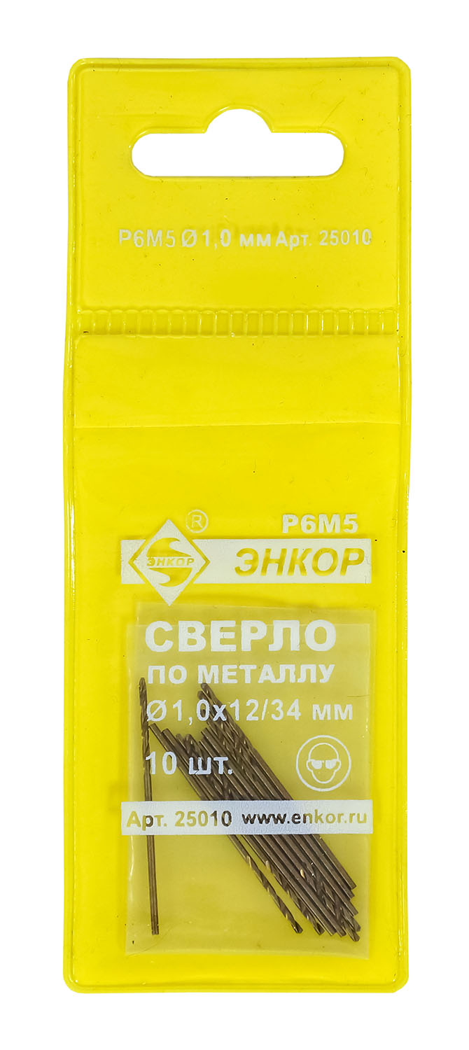 Сверло по металлу р6м5 (Ø1.0х12/34мм) Энкор (25010) 1 шт.