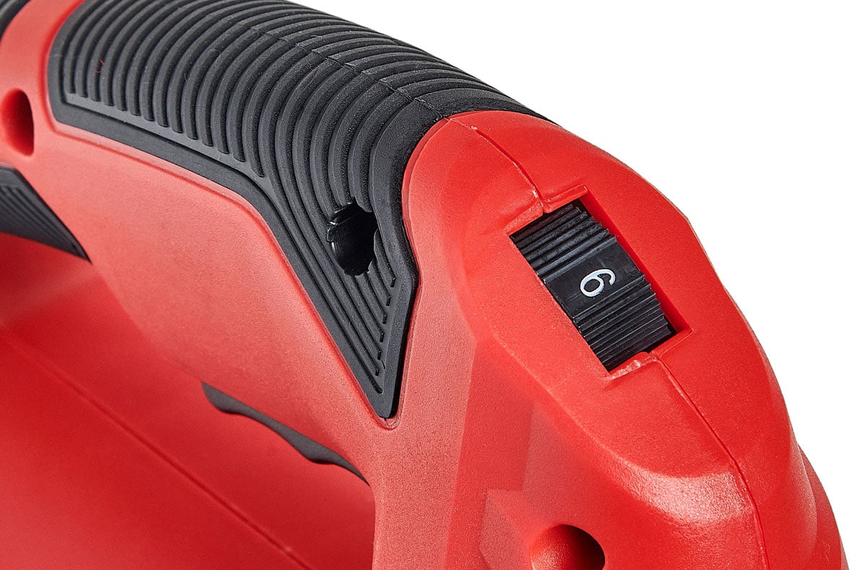 Частота хода пилки плавно регулируется нажатием на электронный выключатель.
