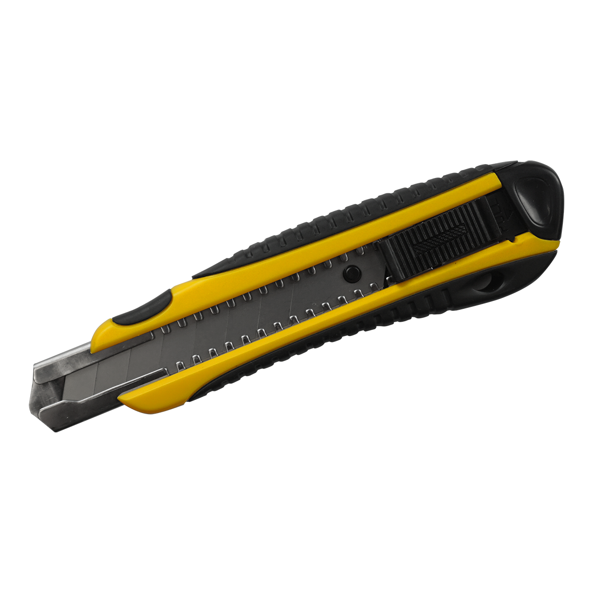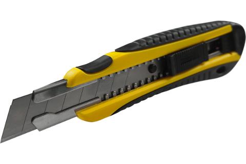 Корпус выполнен в эргономической форме из 2-х компонентного пластика с прорезиненными мягкими вставками для надежного захвата c автоматическим регулированием длины лезвия. Съемный наконечник ручки ножа позволяет быстро обломить затупившийся сегмент лезвия.