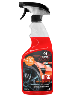 Средство для очистки колесных дисков "Disk" (флакон 600 мл) Эффективное чистящее средство на основе смеси органических и неорганических кислот, предназначенное для чистки всех кислотостойких материалов, таких как стальные и окрашенные алюминиевые колесные диски, а также хромированных и никелированных поверхностей.