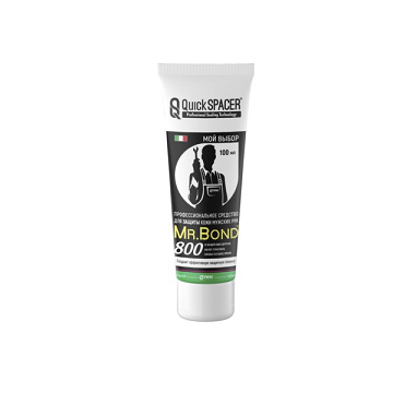 Профессиональное средство для защиты кожи мужских рук QuickSPACER® Mr.Bond® 800 противостоит воздействию щелочей, кислот, анаэробных и силиконовых герметиков, создавая активную защитную пленку на поверхности кожи, защищая от появления раздражений, трещин, шелушений