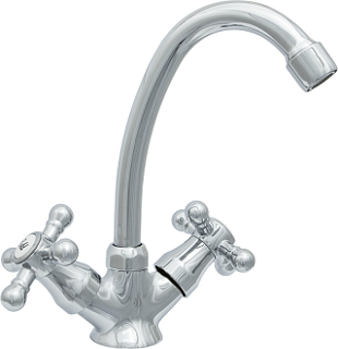 Смеситель для мойки и умывальника, двухрукояточный, центральный, набортный.