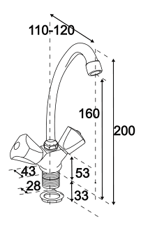 Монтаж на чугунные и стальные мойки, на керамические умывальники. Крепление – резьбовая шпилька. - См-УмДЦБр, См-МДЦБр ГОСТ 25809-96 (излив с развальцованным изливом) - См-УмДЦБА, См-МДЦБА ГОСТ 25809-96 (излив с аэратором) Вентильная головка М 18/1 (возвратно-поступательная/ с керамическим затвором) Высота смесителя 260 мм, высота до рассекателя 180 мм, Вынос излива 150-160 мм, диаметр излива 16 мм.