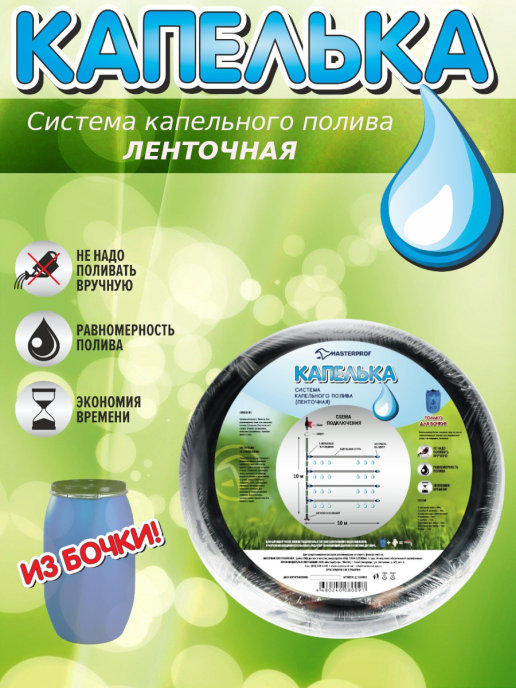 • Система капельного полива MasterProf Капелька ленточная, ДС.060053 - качественное и разумное решение проблемы полива грядок и огорода в целом.
