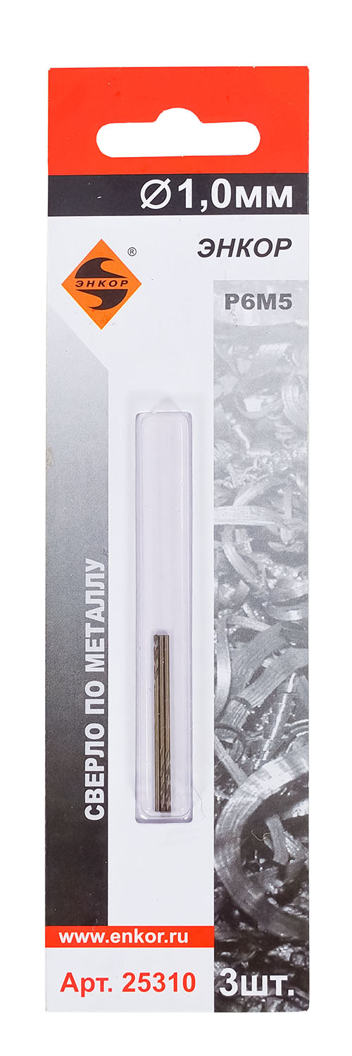 Сверло по металлу р6м5 (Ø 1.0х10/30мм) 3 шт. Энкор (25310)
