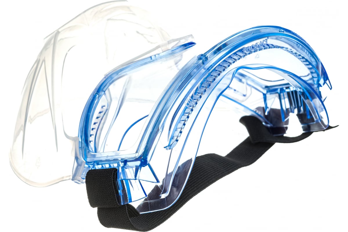 Защитные закрытые очки с непрямой вентиляцией РОСОМЗ ЗН11 PANORAMA, super PC, с щитком защитным 21130+00777 защищают от высокоскоростных летящих частиц со среднеэнергетическим ударом.