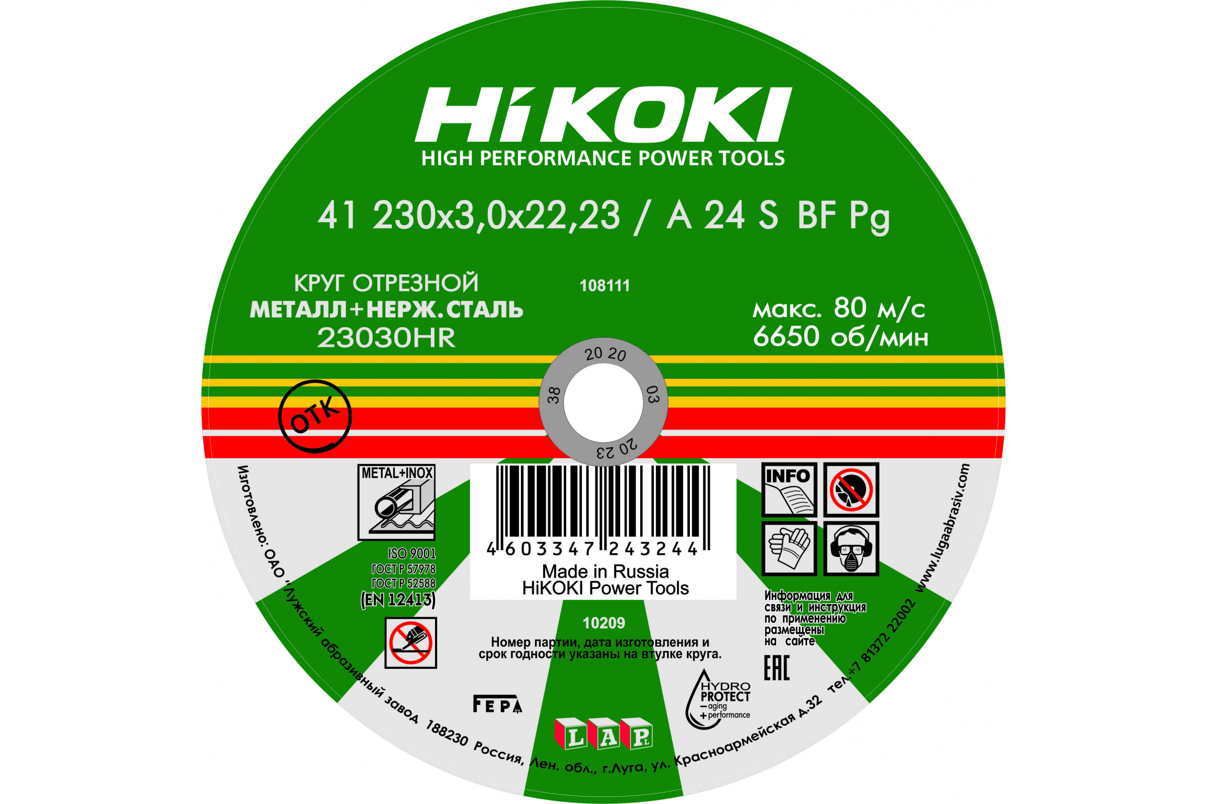 Круг отрезной Ø 230х3,0х22 для металла Hikoki RUH23030