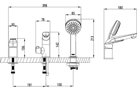Смеситель на борт ванны IDDIS Torr на 3 отверстия с керамическим дивертором TORSB30i07
