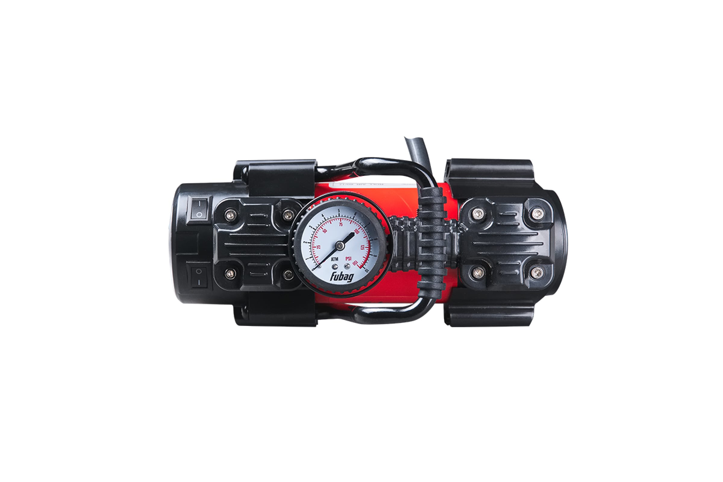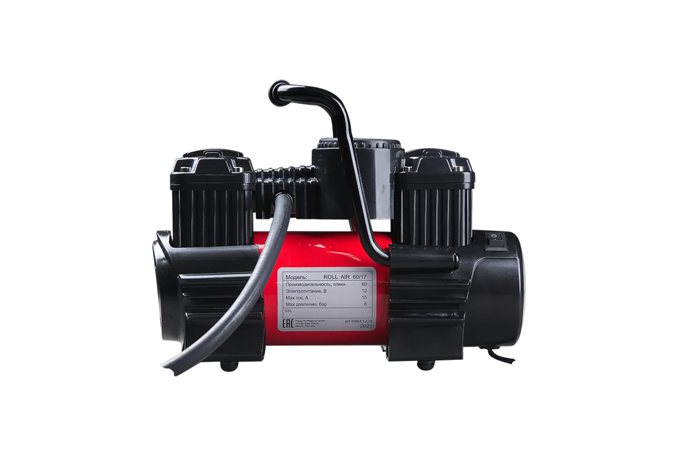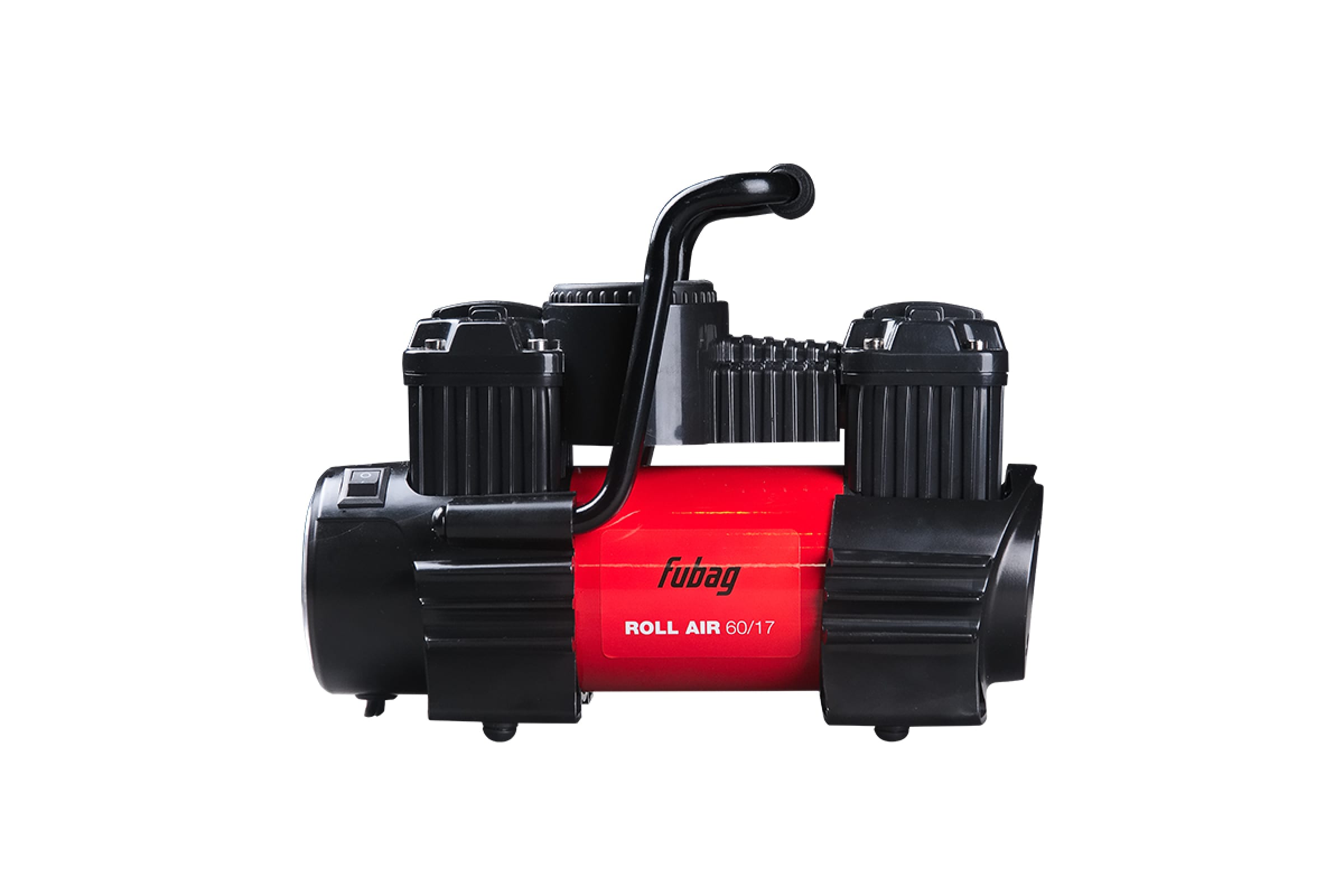 • Автомобильный компрессор FUBAG Roll Air 60/17 68641228 – мощная модель с низким потреблением тока, подключается к прикуривателю автомобиля через сеть 12 В.