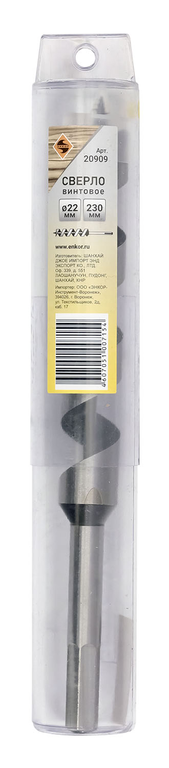 Сверло винтовое по дереву Энкор Ø 22 х140/230 мм (20909)