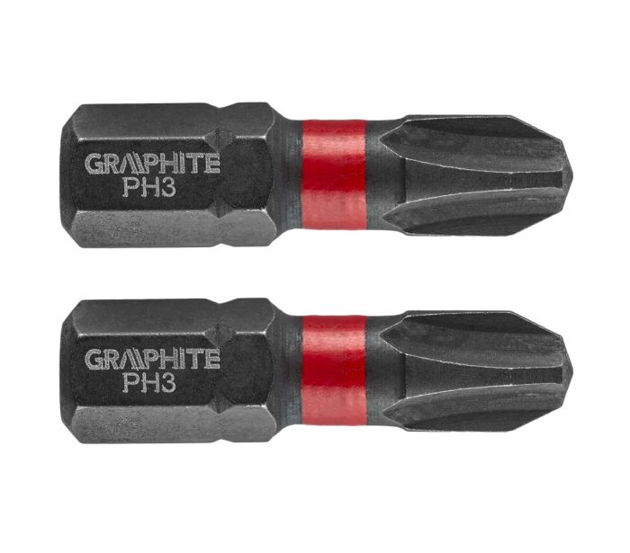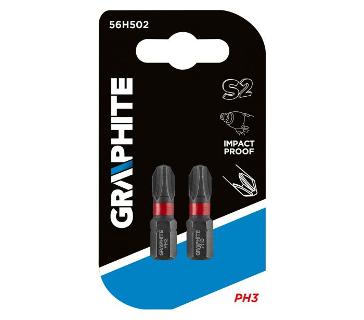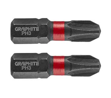 Ударные биты GRAPHITE (арт. 56H502) типа PH3, с общей длиной 25 мм - это сверхмощные биты, предназначенные для более тяжелых работ с высоким крутящим моментом с использованием отверток или ударных отверток.