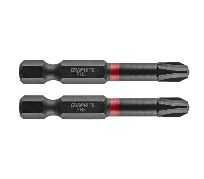 Ударные биты GRAPHITE (арт. 56H520) типа PH3, с общей длиной 50 мм - это сверхмощные биты, предназначенные для более тяжелых работ с высоким крутящим моментом с использованием отверток или ударных отверток.