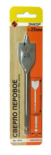 Сверло перьевое по дереву Энкор Ø25 х152мм (19111)