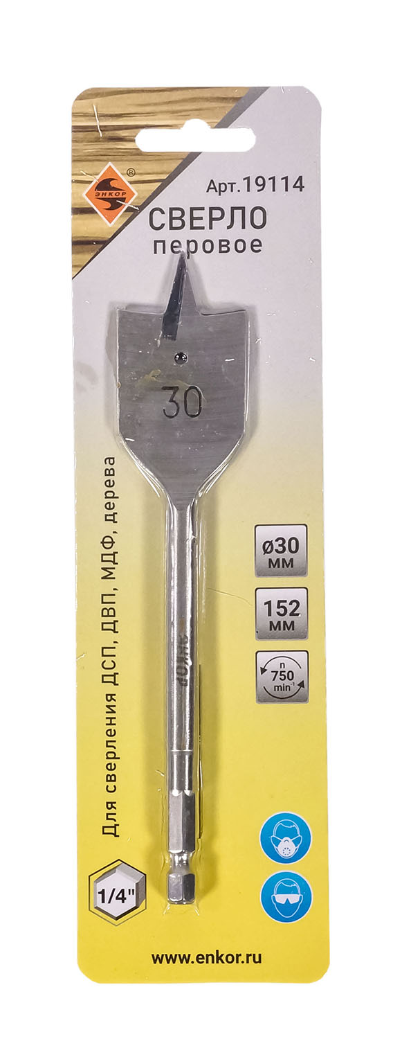 Сверло перьевое по дереву Энкор Ø30 х152мм (19114)